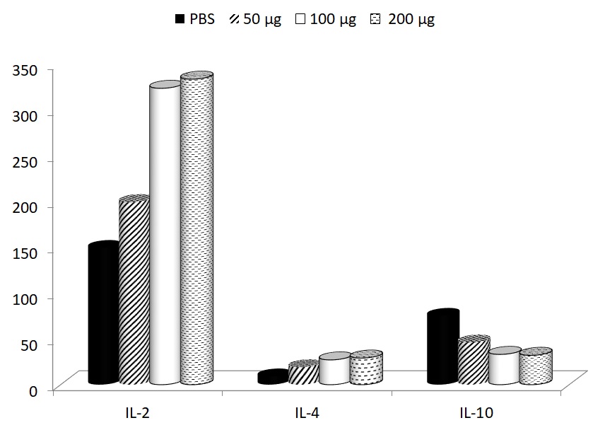 After being cultured in a humidified incubator (37o C, 5% CO2) for 72 hrs, levels of cytokines IL-2, IL-4 and IL-10 secreted by splenocytes in the presence of 5 μg Con A were determined by ELISA: Supernatants were collected, filtered through 0.45 μm filters, and IL-2 and IL-4 measured using Quantikine mouse kits (R&D Systems, Minneapolis, MN).