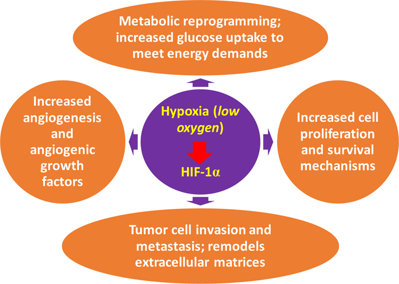 Natural hypoxia exists in tumor environments where metastasizing tumor cells proliferate.HIF-1 induces an alternative metabolic pathway in the tumor microenvironment, making it an essential protein in tumor masses.